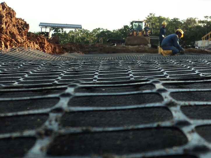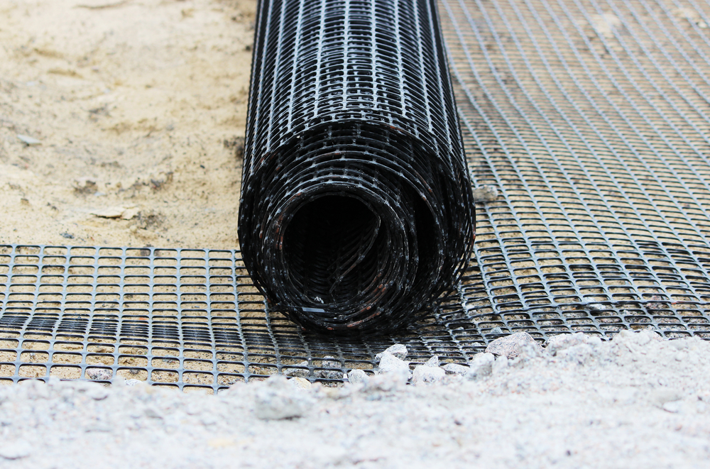 Geosintético de material polimérico ideal para estabilizar superficies, terrenos, cimentaciones o caminos. Se usa para aplicaciones de refuerzo, permiten que el suelo golpee a través de las aberturas y los dos materiales se entrelazan para dar un comportamiento compuesto.